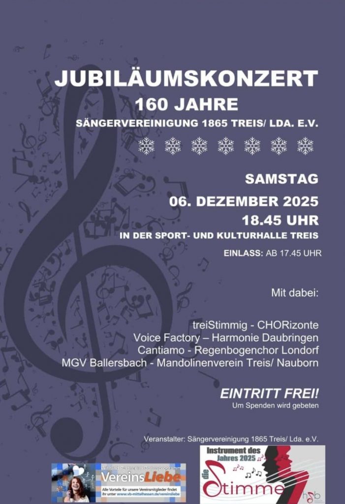 Dies ist die Hompage der Sängervereinigung Treis /Lumda Aktueller gemischter Chor "treistimmig"Seite ist in Bearbeitung